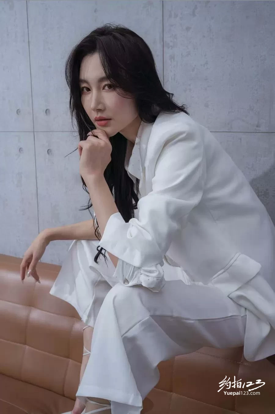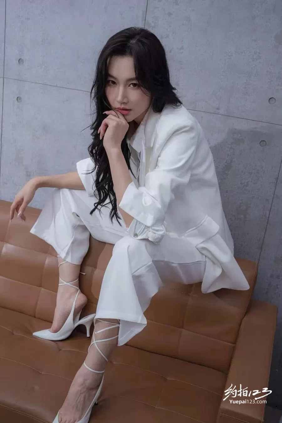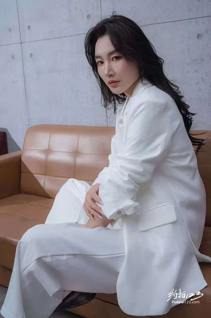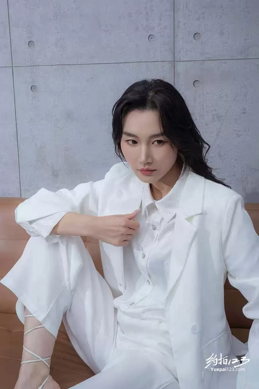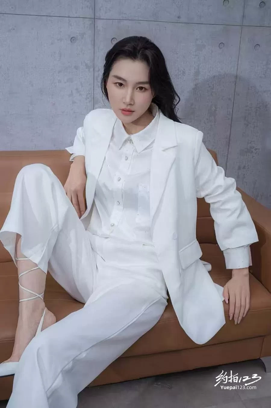 女模特白色西服好飒